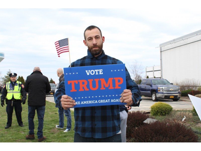 Several organizations, including the Long Island Progressive Coalition, have stationed themselves at a designated "Free Speech Zone" on South Oyster Bay Road to protest Trump’s appearance on Long Island.