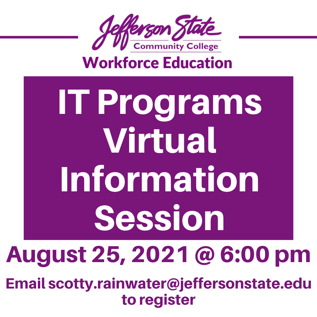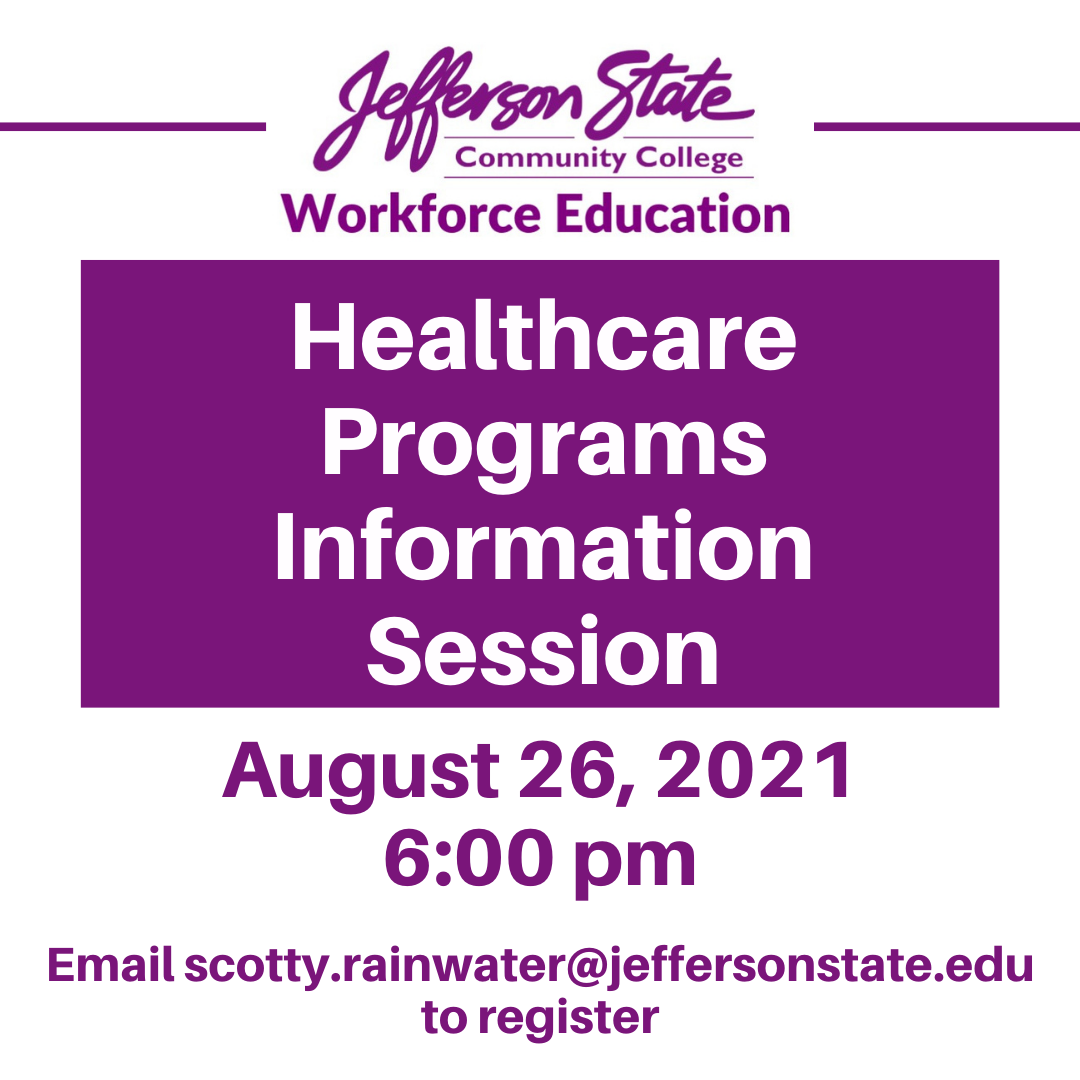 Jefferson State's Center for Workforce Education will host information sessions for those interested in the Healthcare and Information T ...