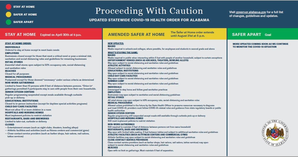 Ivey's "Safer at Home" order remains in effect: