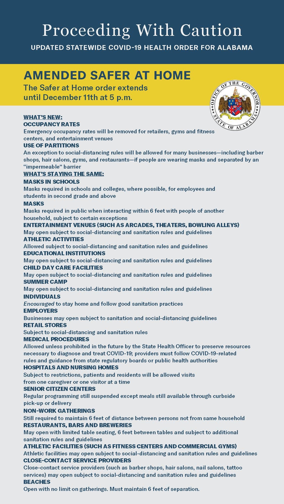 The changes to the Safer at Home Order were issued Thursday by Ivey's office: