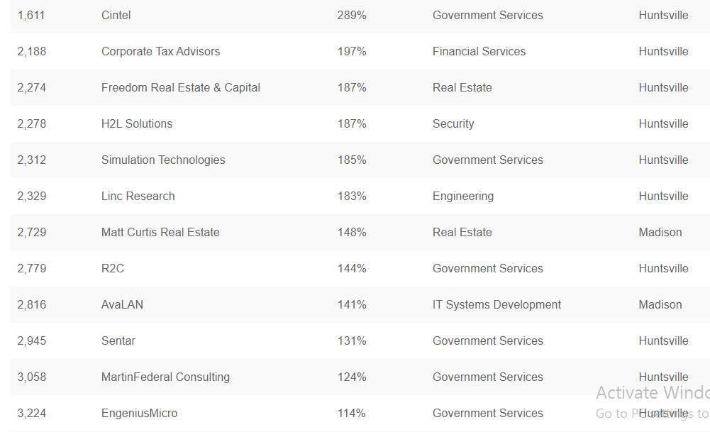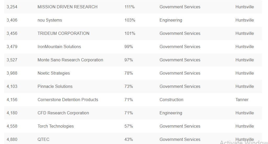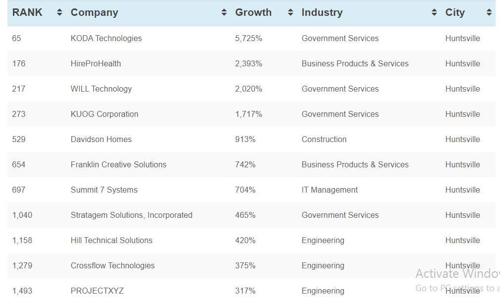Huntsville/Madison County Chamber: 34 Huntsville-Area Companies Make Inc. 5000 List For 2021