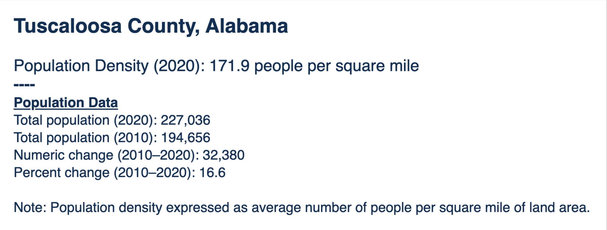 Census: Tuscaloosa County Population Grew 16% Since 2010