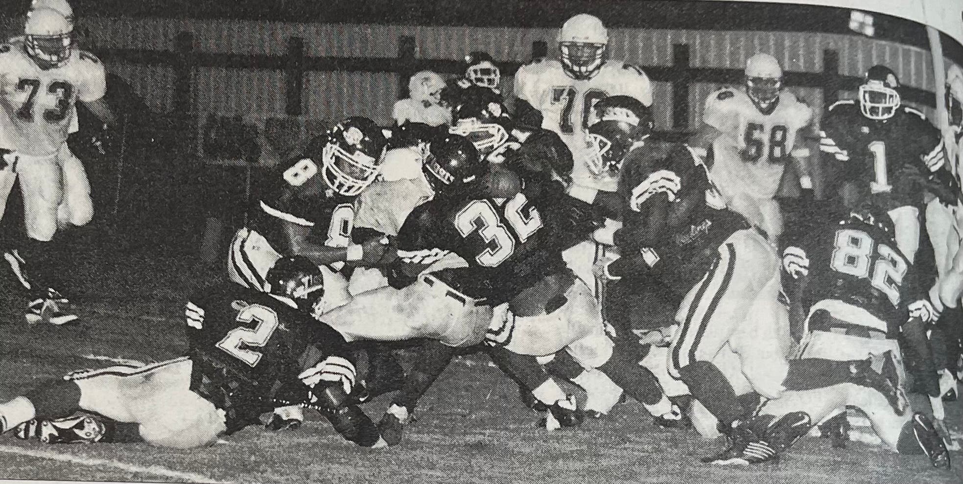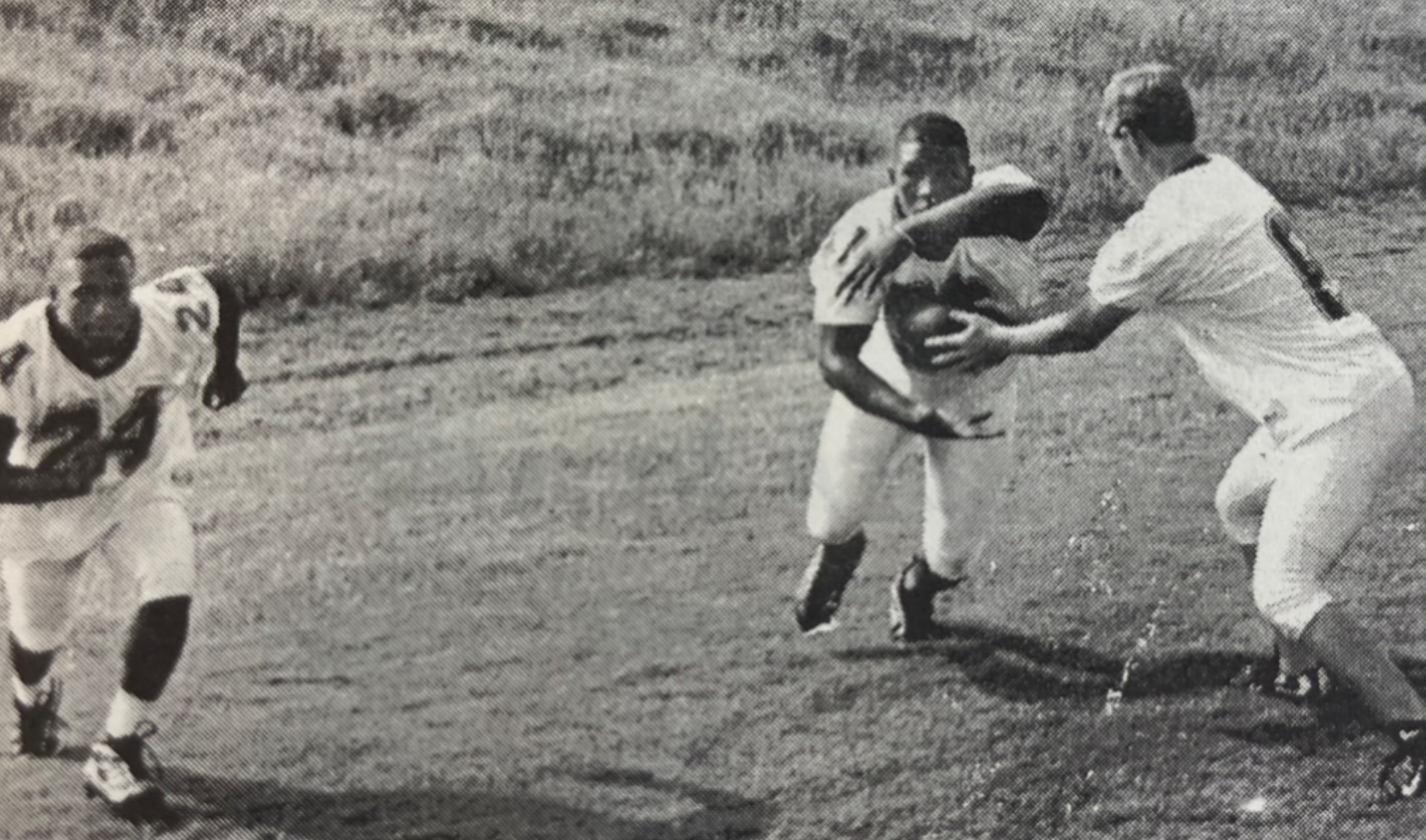 It was his only mention in the newspaper story, but the corresponding photo published in that edition of the Northport Gazette captured a flash of history with No. 6 Titus Ryan blocking for Crocker.