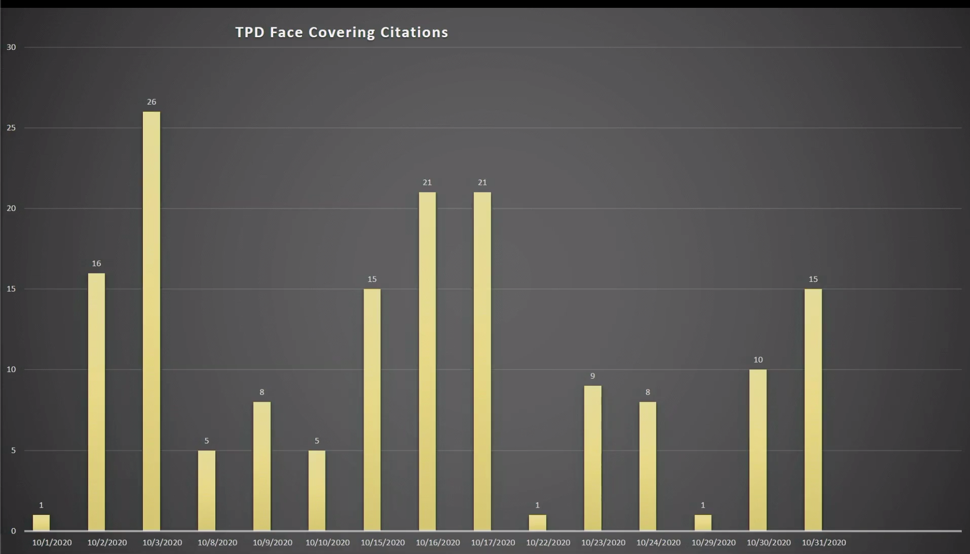Additionally, Maddox provided his usual a report, saying the Tuscaloosa Police Department had issued 25 total mask citations over a Halloween weekend that also featured the University of Alabama's home football game against Mississippi State.