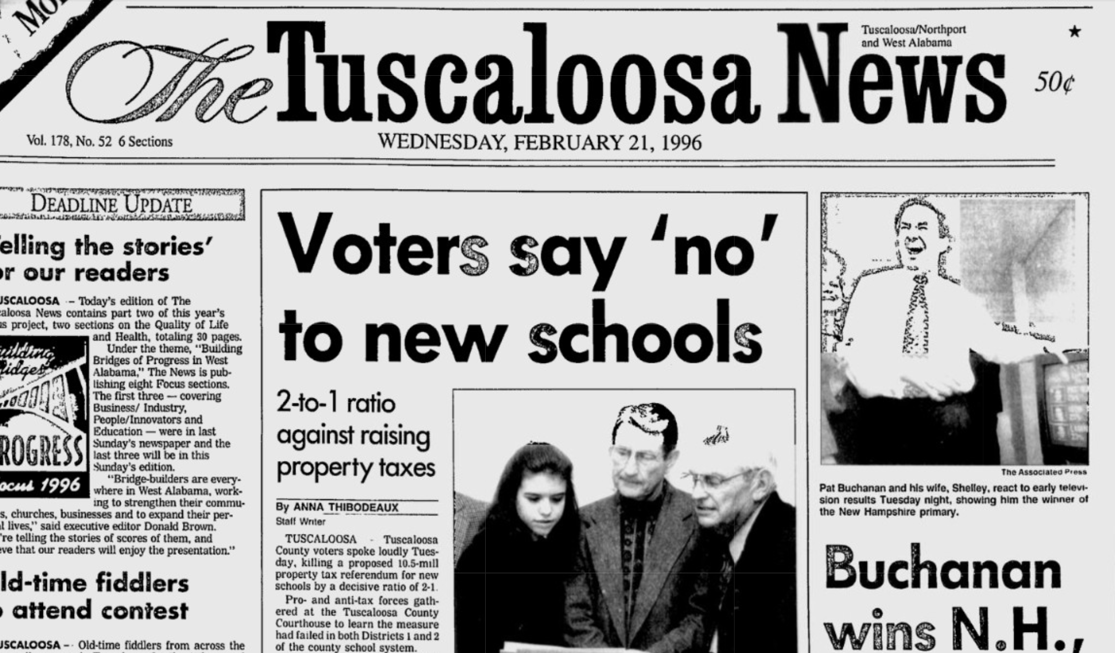 Others in opposition to raising property taxes in 1996 also suggested consolidating both the Tuscaloosa County School System and Tuscaloosa City Schools into one school district — a concept that would be an even tougher sell to the public today considering the balance of power in favor of the county and how much Tuscaloosa County has grown just in the last two decades.