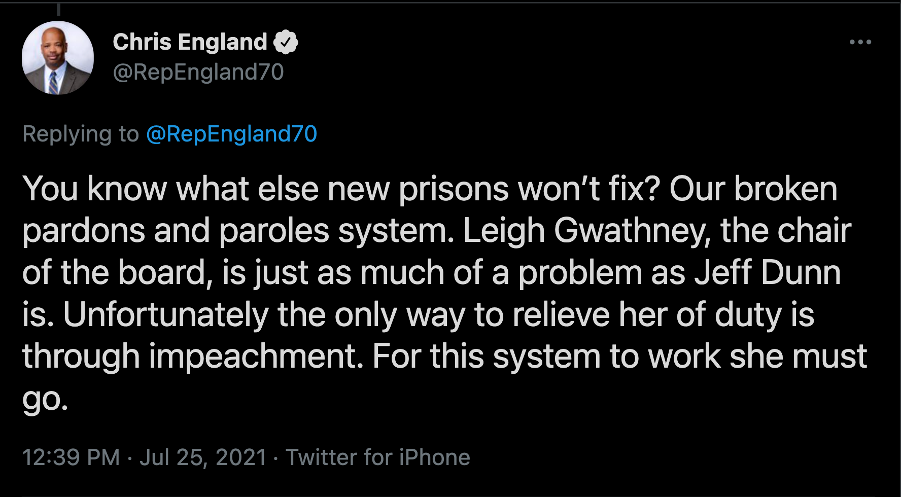 England Calls For Leadership Changes In ADOC, Pardons & Paroles