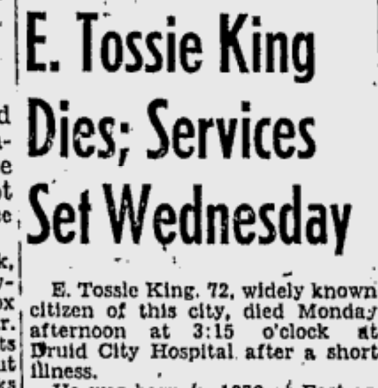 TUSCALOOSA, AL — As far as this reporter could dig up, there are no existing photographs or paintings of Earnest "Tossie" King.