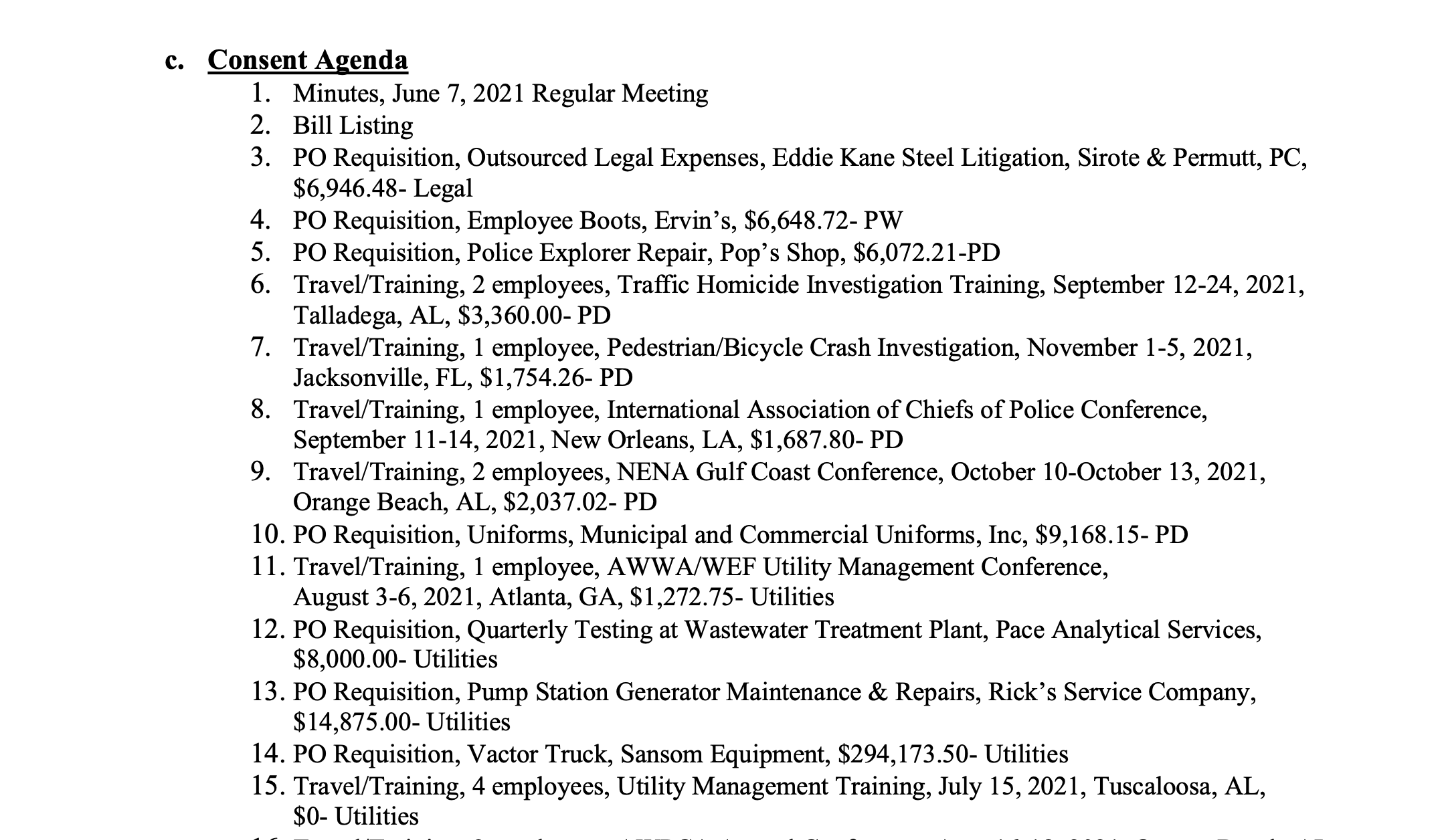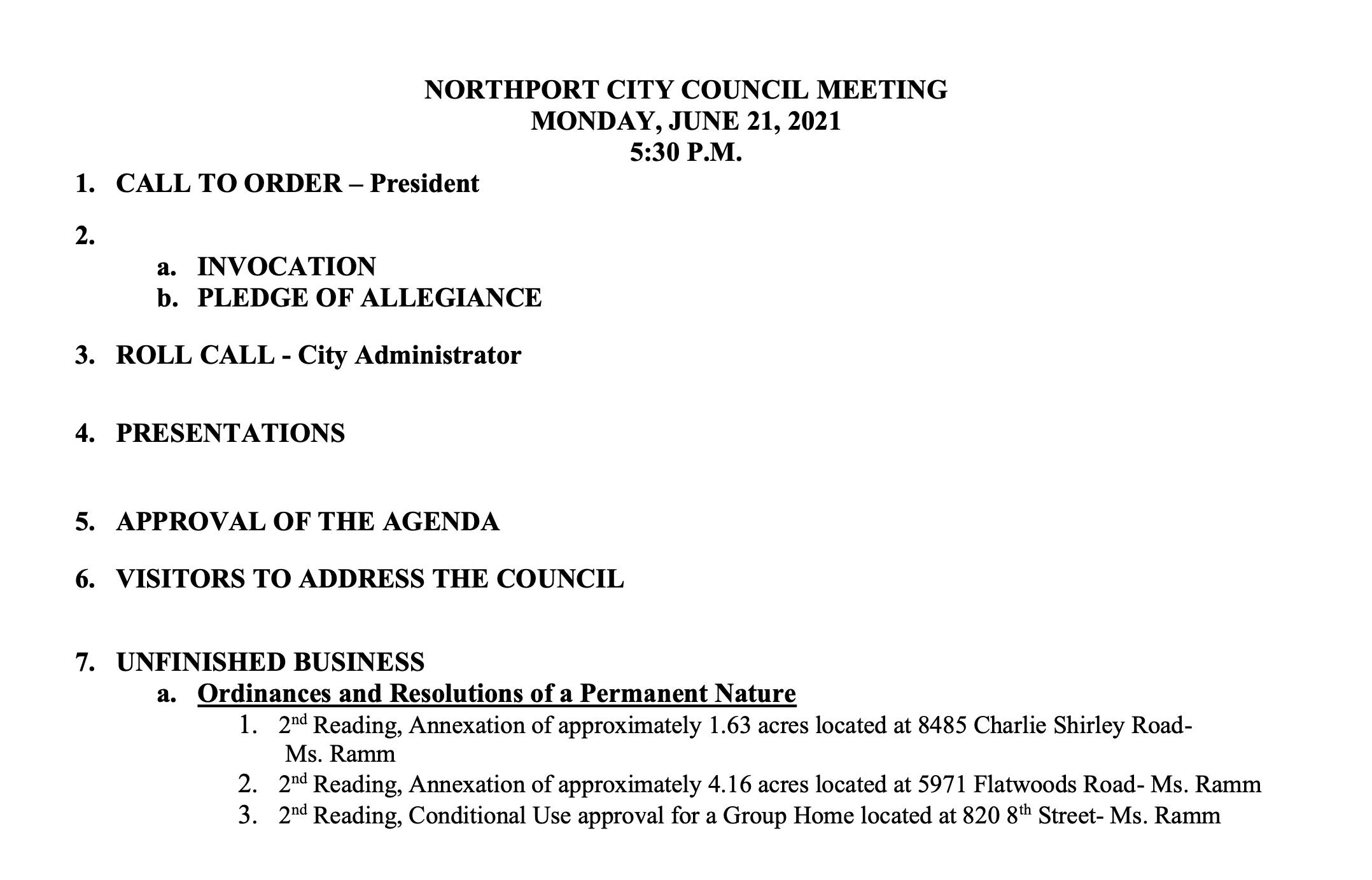 Here's the full agenda for Monday's Northport City Council meeting.