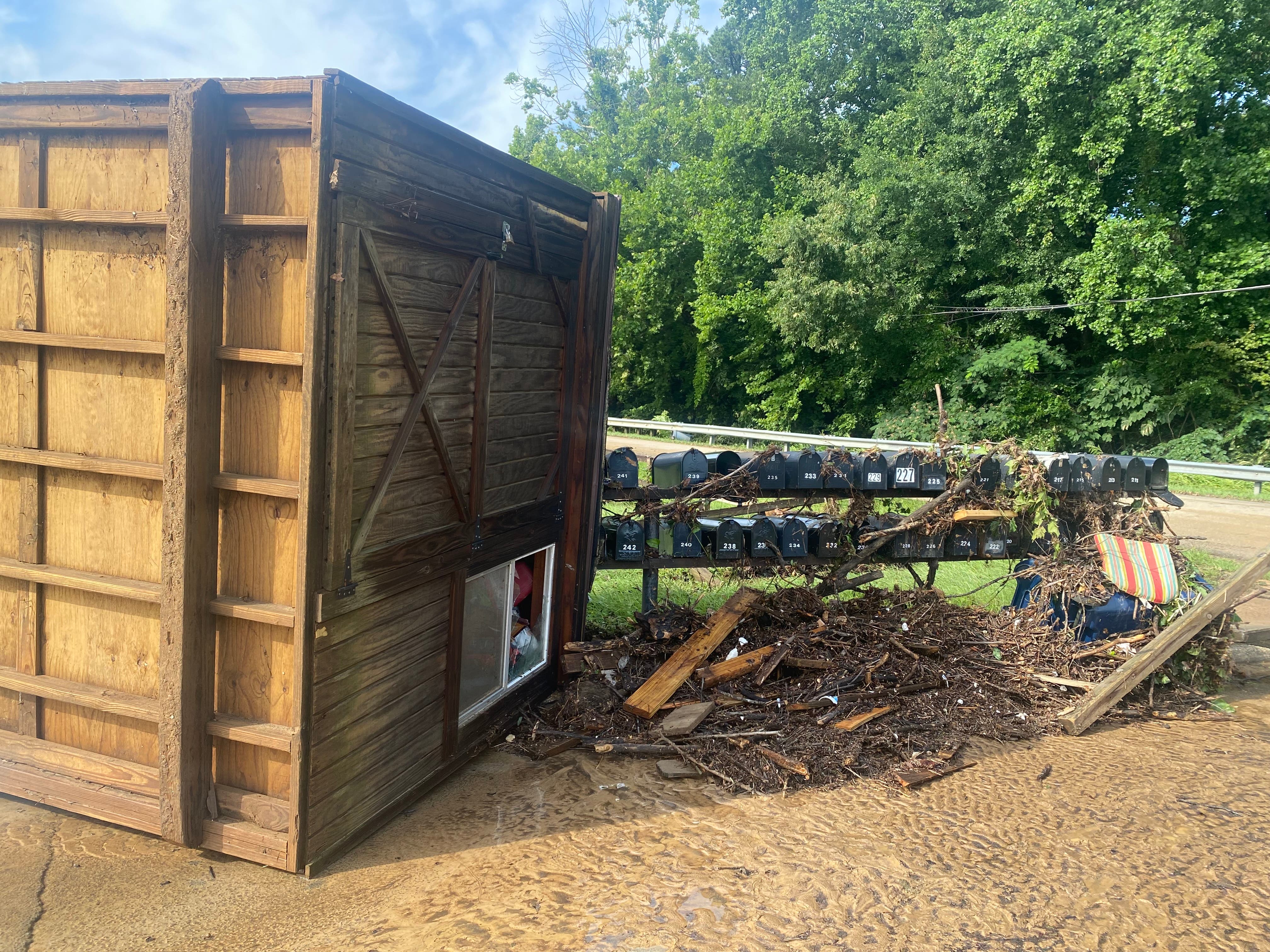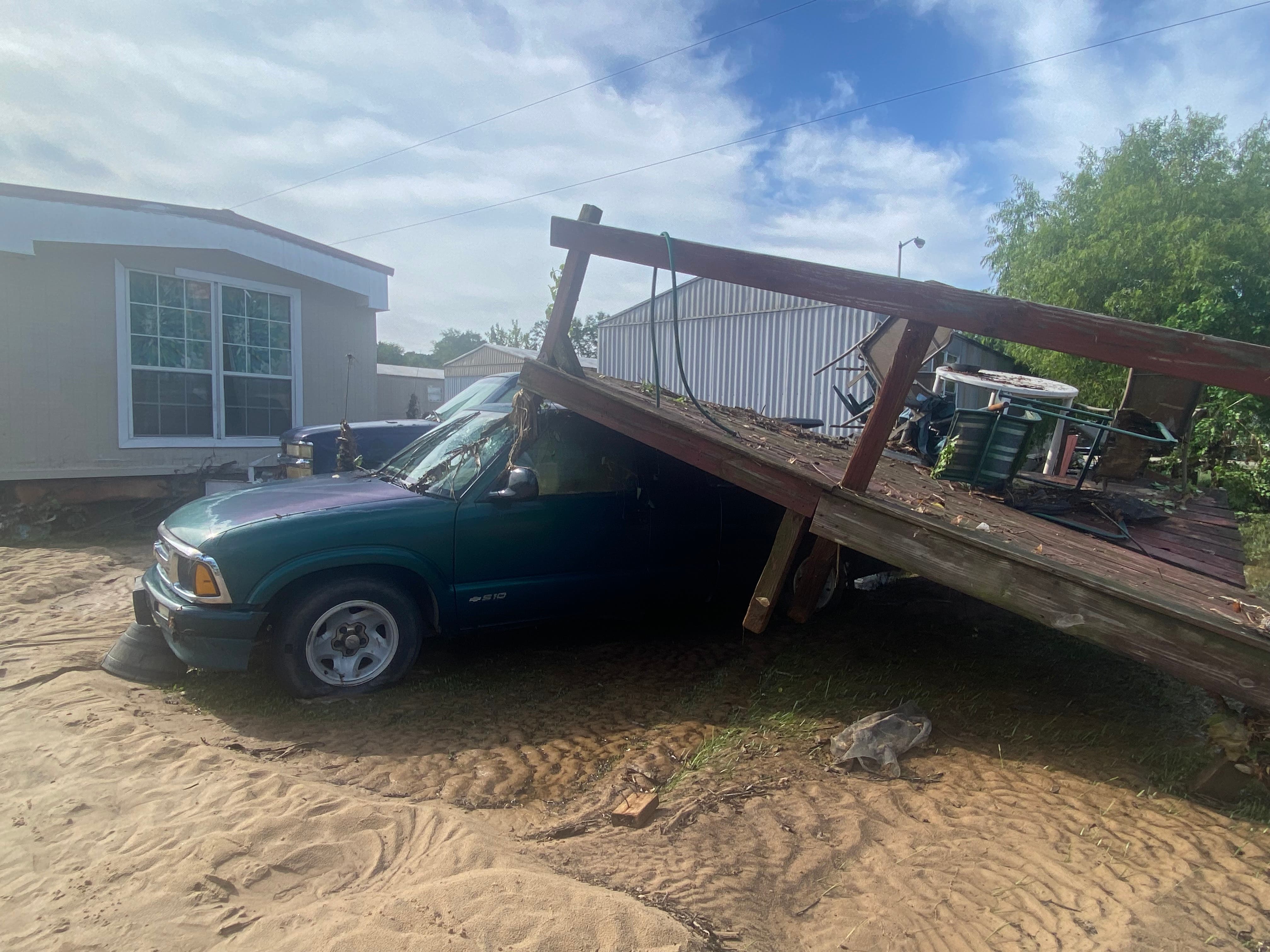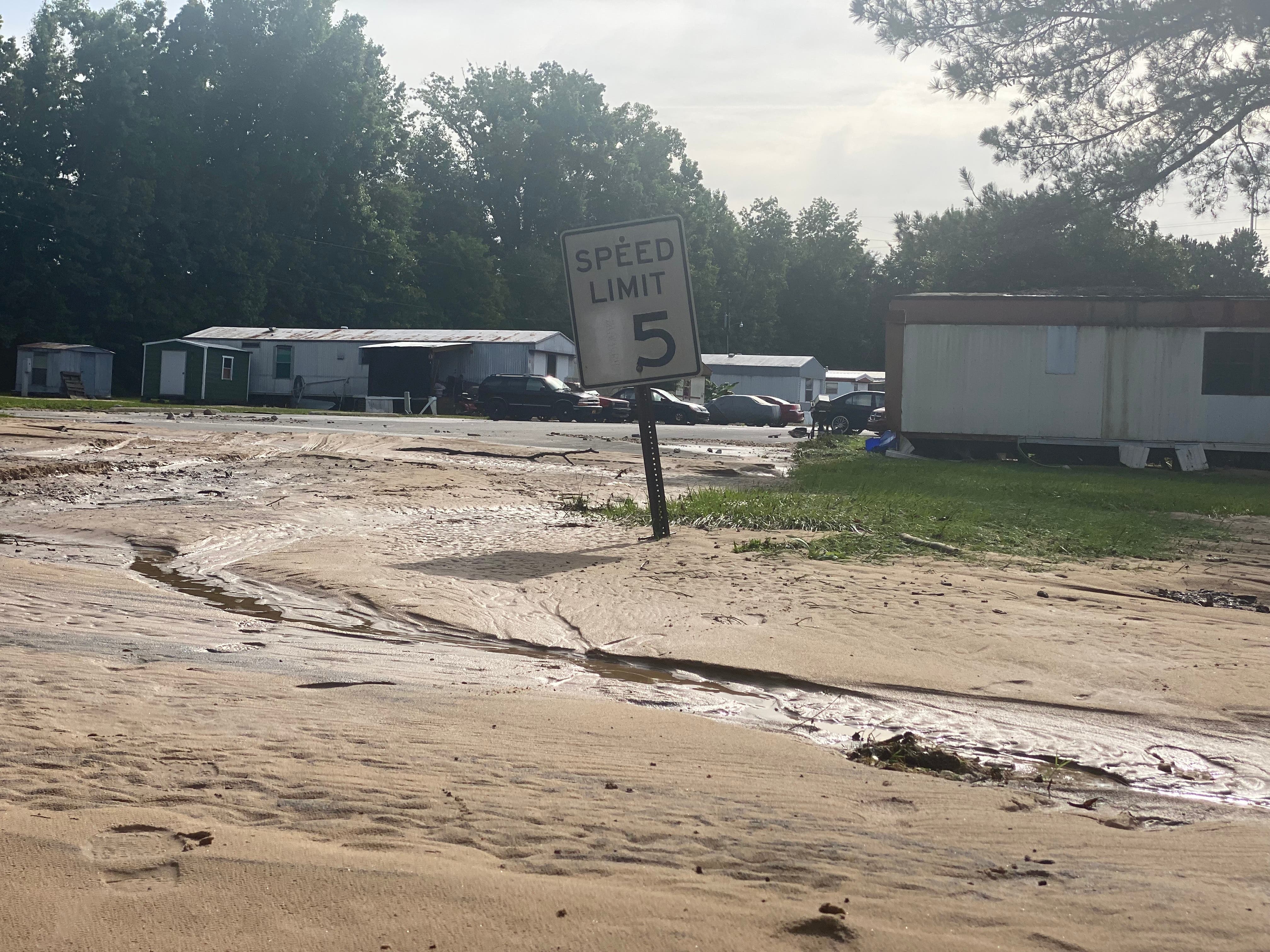 One resident saw their mobile home completely crumble under the pressure from flood waters and told Patch they had no choice but to wait out the storm to be rescued. Other residents could be seen Sunday morning traversing the heavy layer of mud and silt brought on dry land by the nearby creek, picking up debris and going through their flooded homes.