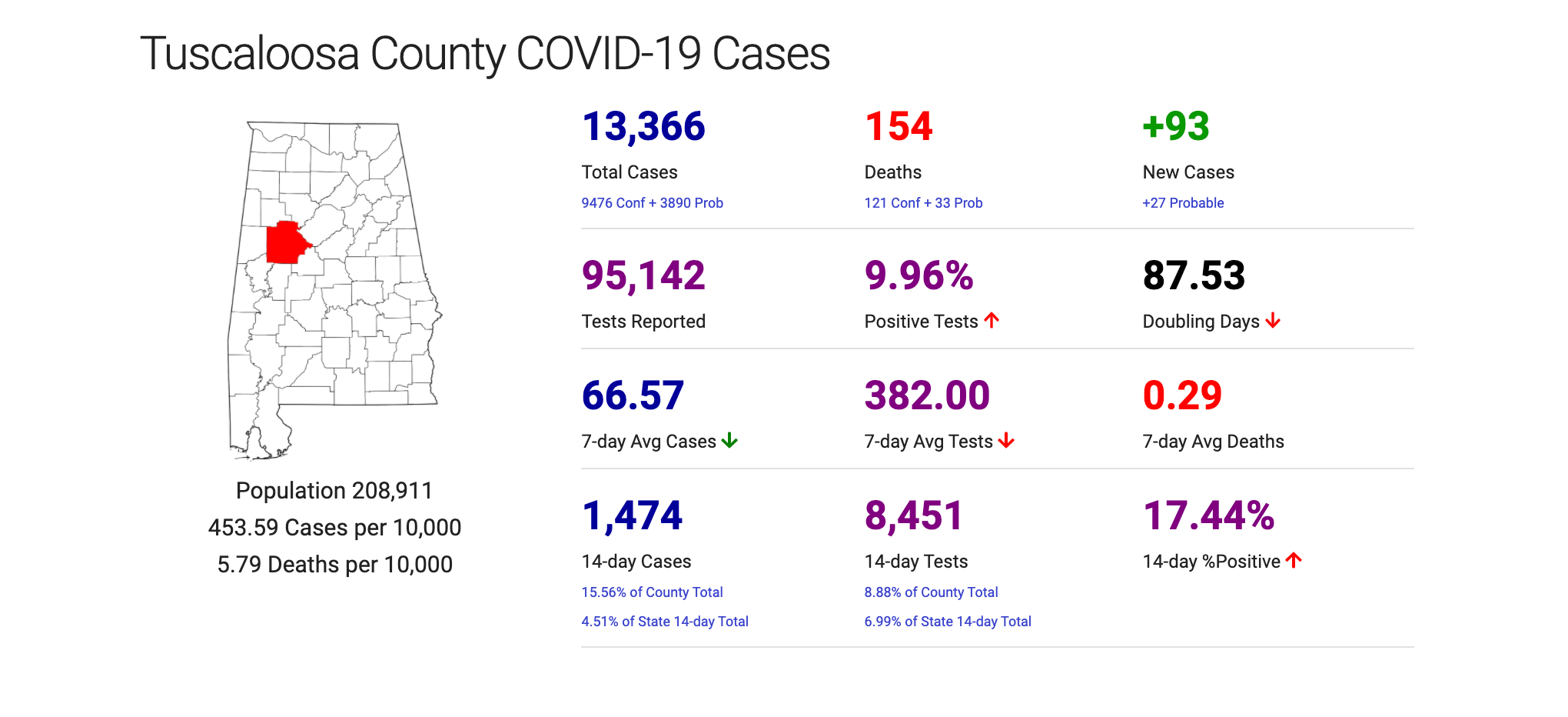 - The Alabama Department of Public Health reported Tuscaloosa County added 93 new coronavirus cases on Tuesday, with the high statewide numbers attributed to a delay in testing due to the Thanksgiving holiday.