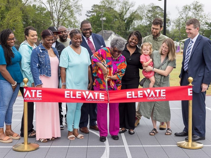 "We're in a time and space where it does feel like opposing forces are keeping anything from getting done, but not here in Tuscaloosa, Alabama,” Tuscaloosa Mayor Walt Maddox said. “To think 573 days ago we walked around this park and today we're cutting the ribbon on something that I believe is built to serve generations that come through this community."
