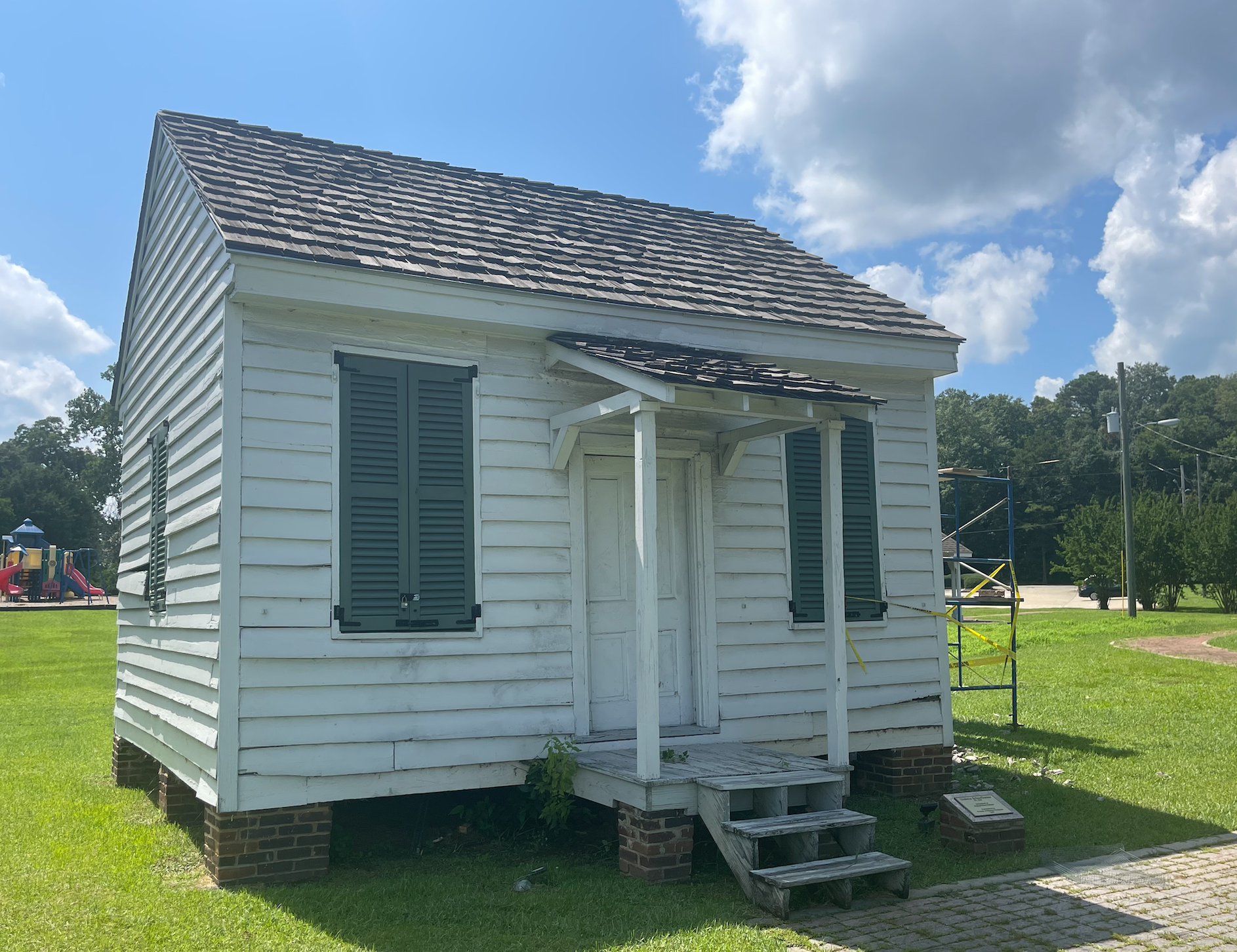 According to Historic Tuscaloosa, the building served as a schoolhouse for the children of the Umbria plantation in the Hale County community of Sawyerville — sitting adjacent to a grand antebellum plantation home. The family also employed a tutor as part of the household staff.
