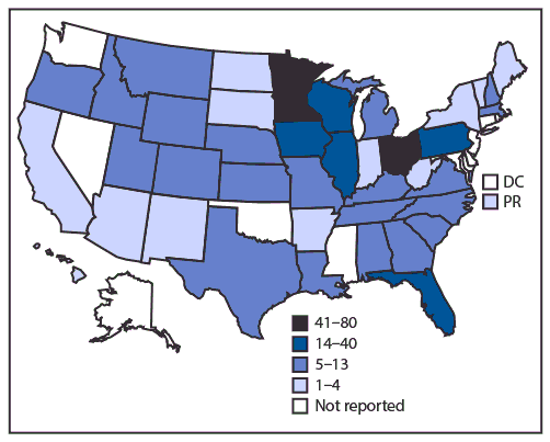 - Most cases were reported in the months of July and August, and 2016 was the peak year for outbreaks, with more than 80.