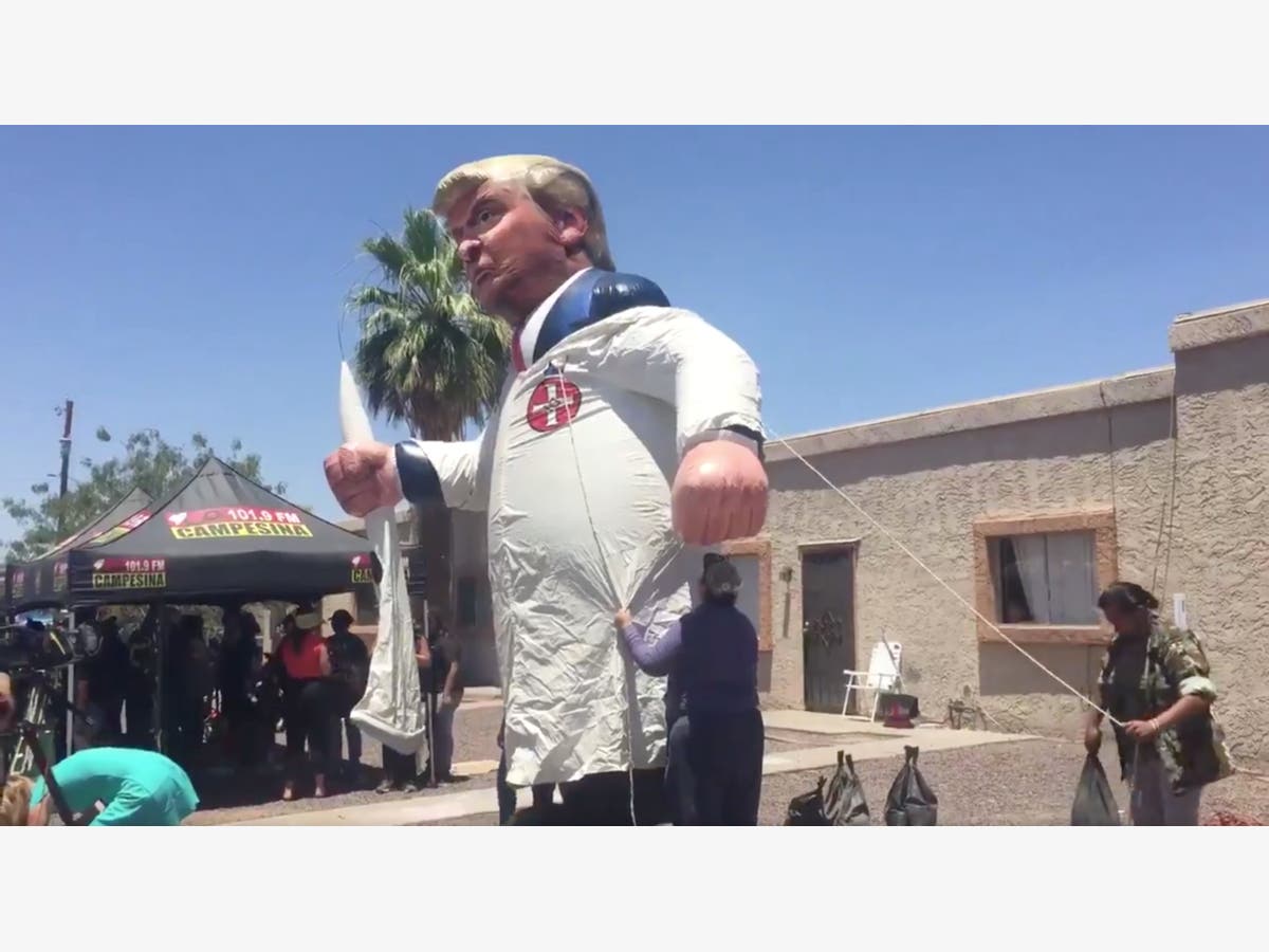 Protesters awaiting the first lady in Phoenix appeared tiny next to an inflatable Donald Trump in Ku Klux Klan garb.