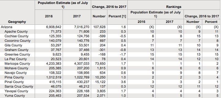 PHOENIX, AZ –Maricopa County welcomes more new residents last year than any other county in the country. The Census Bureau said Thursday that 74,000 people moved into the county in 2017.