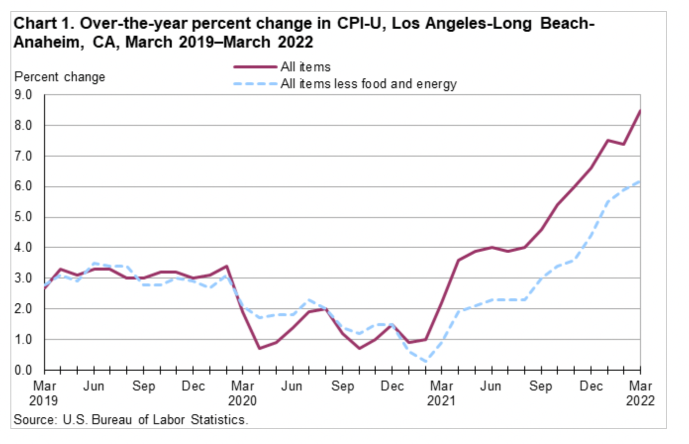 In the Southland, food prices surged 8.5 percent since March of last year. Alcoholic beverages surged 5.9 percent since last year and housing prices raised 5.9 percent since last year. The price of meats, poultry, fish and eggs went up 10.3 percent since last year, according to the U.S. Bureau of Labor Statistics.