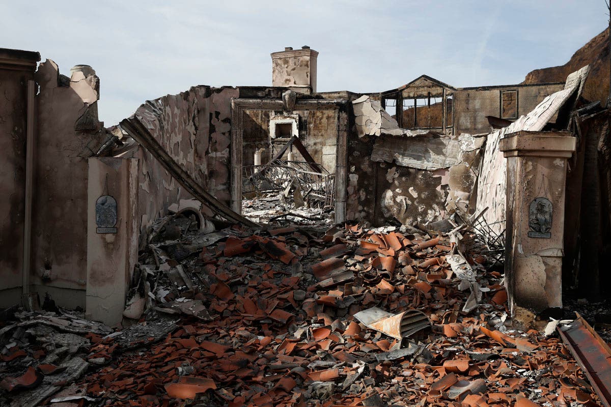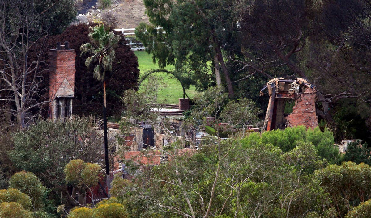 The Malibu, CA., villa of German TV presenter Thomas Gottschalk lies in ruins from the Woolsey fire. (AP Photo/Reed Saxon)