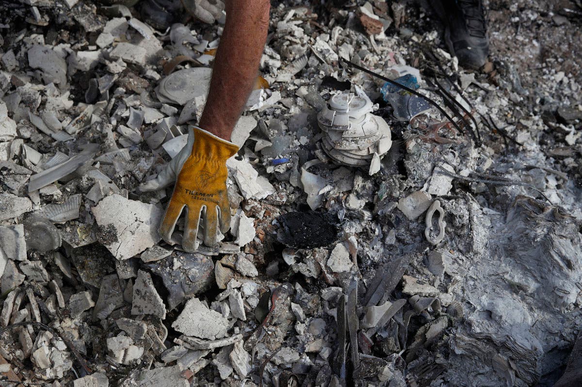 Roger Kelton searches through the remains of his mother-in-law's home burned down by the Woolsey Fire. (AP Photo/Jae C. Hong)