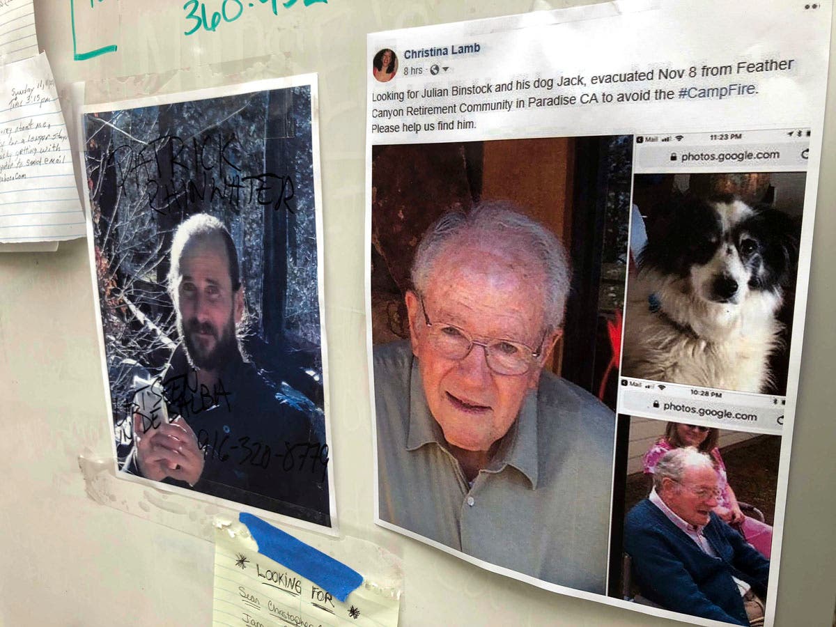 Messages are shown on a bulletin board at The Neighborhood Church in Chico, CA. Numerous postings fill the message board as evacuees, family and friends search for people missing from the northern California wildfire. (AP Photo/Gillian Flaccus)
