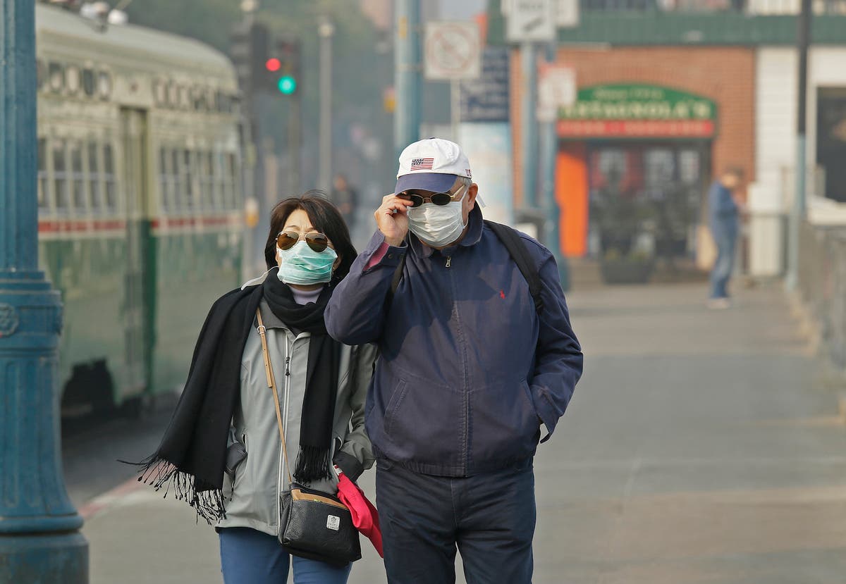 Many people don masks to deal with the smoke from the Camp Fire in Sacramento, CA. (AP Photo/Rich Pedroncelli)