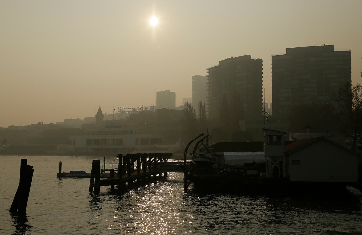 Aquatic Park and Ghirardelli Square in the background is obscured by smoke and haze from wildfires in San Francisco. (AP Photo/Eric Risberg)
