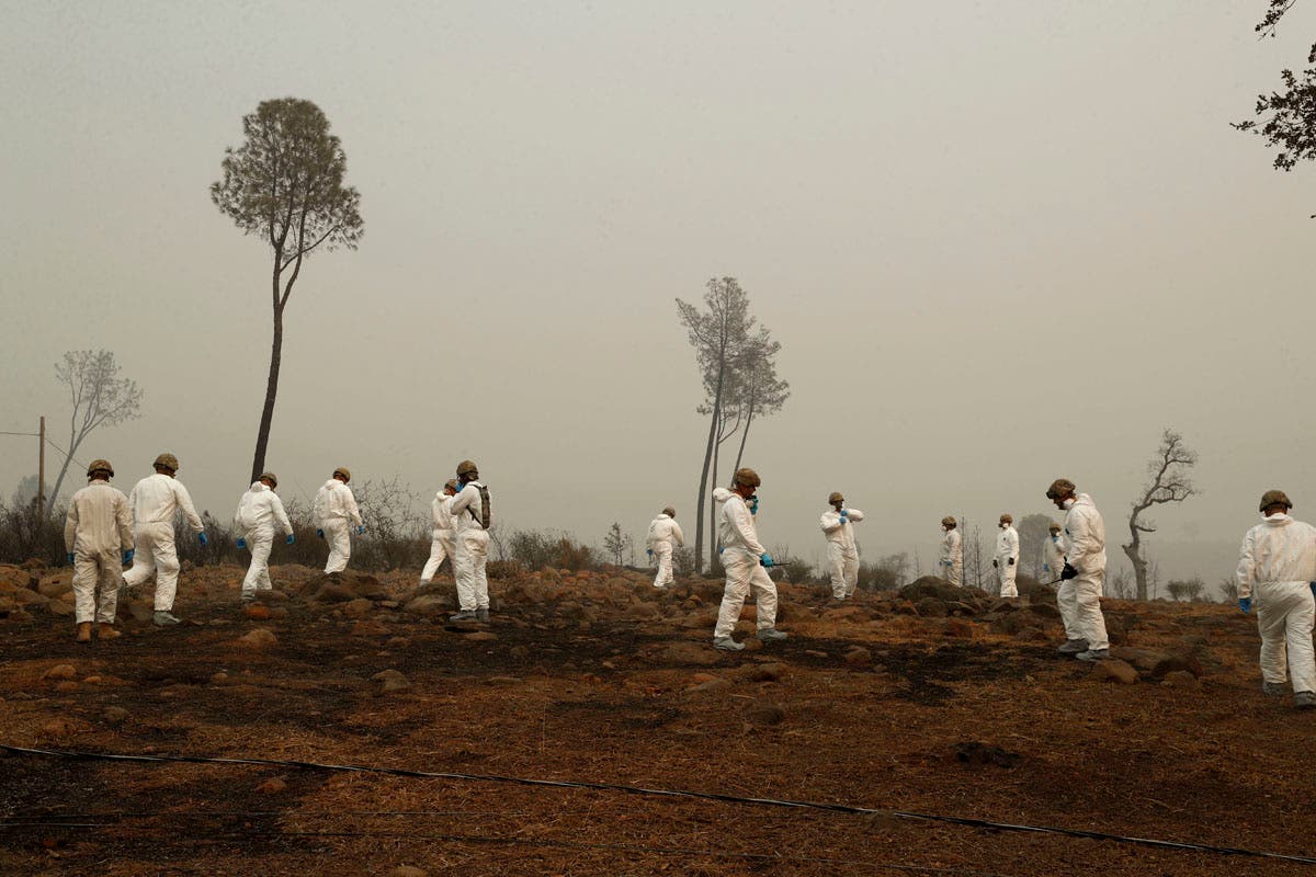 Members of the California Army National Guard search a property for human remains at the Camp fire in Paradise, CA. (AP Photo/John Locher)