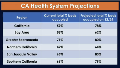 Currently, 59 percent of California's hospital beds are occupied. Projections show 78 percent of hospital beds will be occupied by Dec. 24, if trends do not improve.