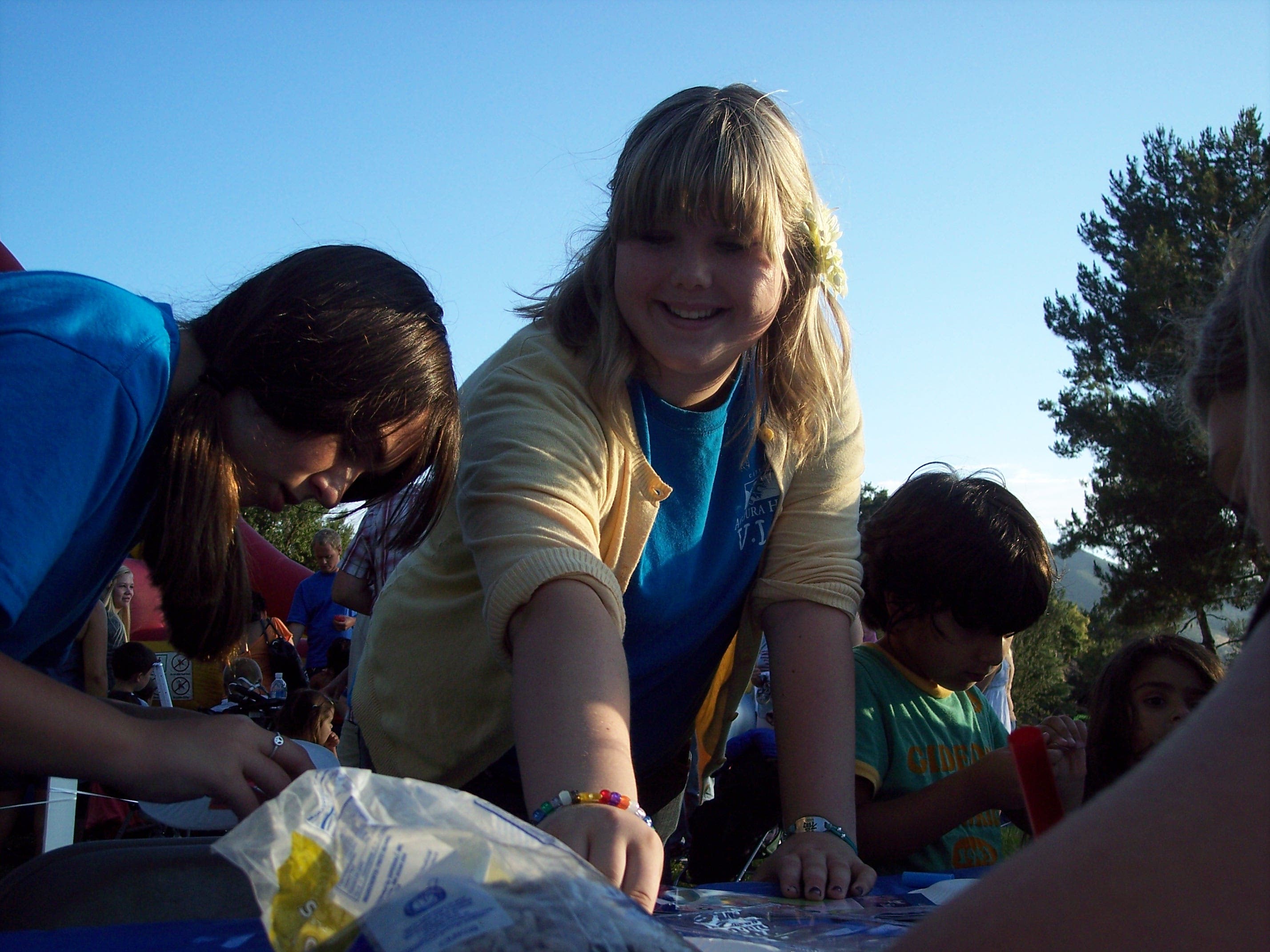 On a Sunday in July, 13-year-old Kaitlin Young sits in the Kid Zone of the city of Agoura Hills' Concert in the Park event, supervising crafts projects along with her fellow VIP volunteers.