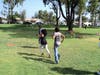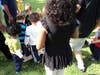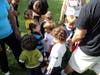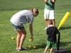 For the next activity, Coach Andy set-up a mini baseball diamond and told the kids and parents to chase him from base to base. About 20 of us hovered around a 17-inch base until we were told to run to the next one. It was a bit chaotic, to say the least.