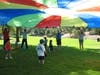 The class never did get to any of the basketball play, but Coach Andy's promise of a trifecta stayed true for my son, whose third challenge proved to be taking on the parachute.