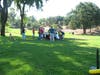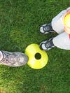 At this point, kids were opting to sit in the dewy grass rather than participate. "No más," my son whined. Coach Andy took out the parachute for an activity that required less physical effort. It was perfect timing. Except, my son grabbed my hand and led me several yards away from the group. He made it clear that he wanted nothing to do with it.
