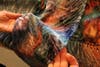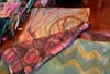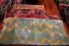 Although she used to weave her own scarves, she now sources hand made scarves ranging from 100 percent silk to rayon (“which really pick up color”) and velvety silk-rayon blends (“which make the foreground really pop”).