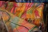 As a fiber artist with an affinity for watercolor, Kromick is a colorist who utilizes the flowing canvases for her artistic expression, a suitable medium to imbue with amorphous forms derived from nature. Working from home, both in her living room and studio, Kromnick spends three hours on each scarf.