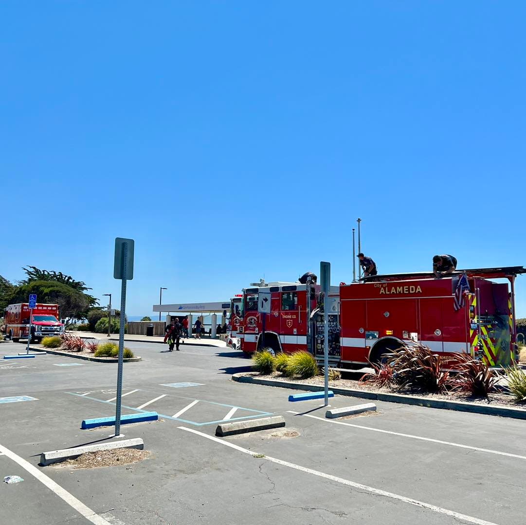 Firefighters responded at 1:14 p.m. to the water near the Harbor Bay Ferry Terminal as multiple people in the water were calling for help.