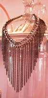 I love the 1920s. The 1940s are also fun. We have posters of vintage ladies from the silent movies. There’s an artist in San Francisco who hand tints them and add glitter. And there are some necklaces with photos of old movie stars like Marlene Dietrich and Katherine Hepburn.