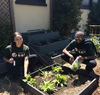 Photo 1: Savannah Sands and DaMariy’a Compton harvest lettuce from the WCDC garden they rejuvenated this summer.