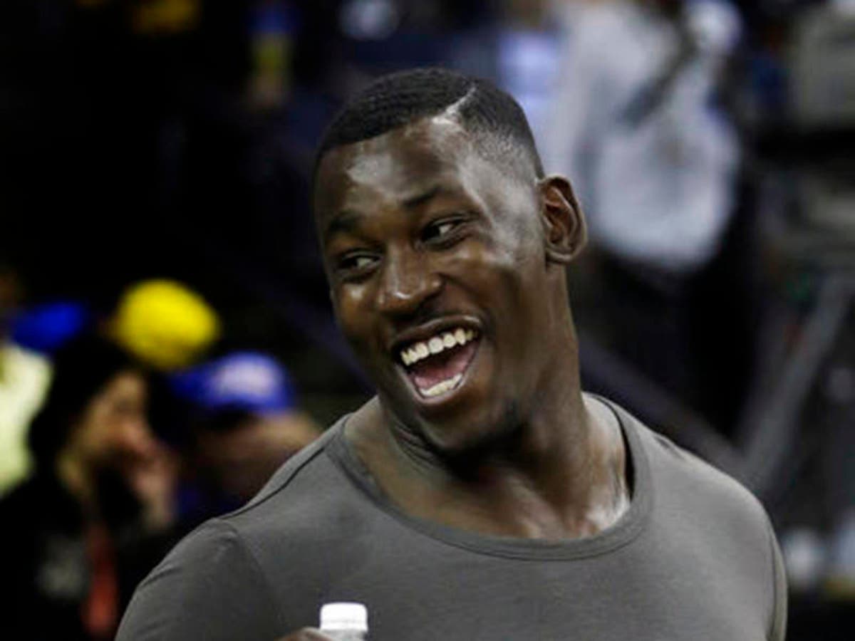 --Bay City News/Photo: Oakland Raiders linebacker Aldon Smith smiles while attending an NBA basketball game between the Golden State Warriors and the Oklahoma City Thunder on Thursday, Nov. 3, 2016, in Oakland, Calif. (AP Photo/Ben Margot)