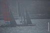 Sunday’s second race in 23-knot winds was on the edge of control, but today might top that. The weather forecast calls for winds between 18 and 22 knots, and we’ll see the highest wind limits since the start of racing in July. The base 23-knot limit will increase by more than 1 knot due to a strong flood (incoming) tide. For Race 5 the limit is increased to 24.9 knots and for Race 6 it’s increased to 24.5 knots.