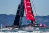 Emirates Team New Zealand remained aggressive through the race, tacking and jibing a total of 20 times in the hopes of a foul-up by the defender, but it never happened as ORACLE TEAM USA matched every move and gained time on all five legs of the racecourse.