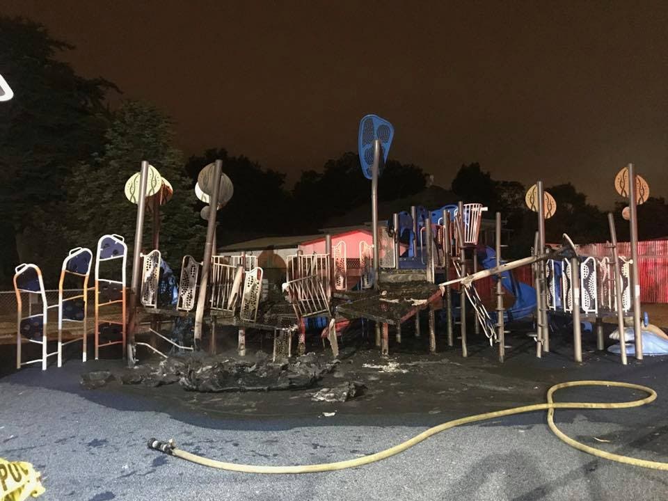 Firefighters were called to the park in the 300 block of Cypress Avenue around 3:45 a.m. Saturday. They found the play structure fully involved in fire. Both the play structure and surrounding rubberized turf burned, but the 10 firefighters prevented the fire from spreading to nearby buildings.
