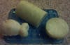 When the reaction is done, I mold the soap. So far, as I experiment with my formula, I've been molding in a fish-shaped silicone ice tray and a small PVC pipe I had around. I like the pipe because once I de-mold the soap I can cut it into either little rounds or semi-cylinders. You can see the results in the photo.