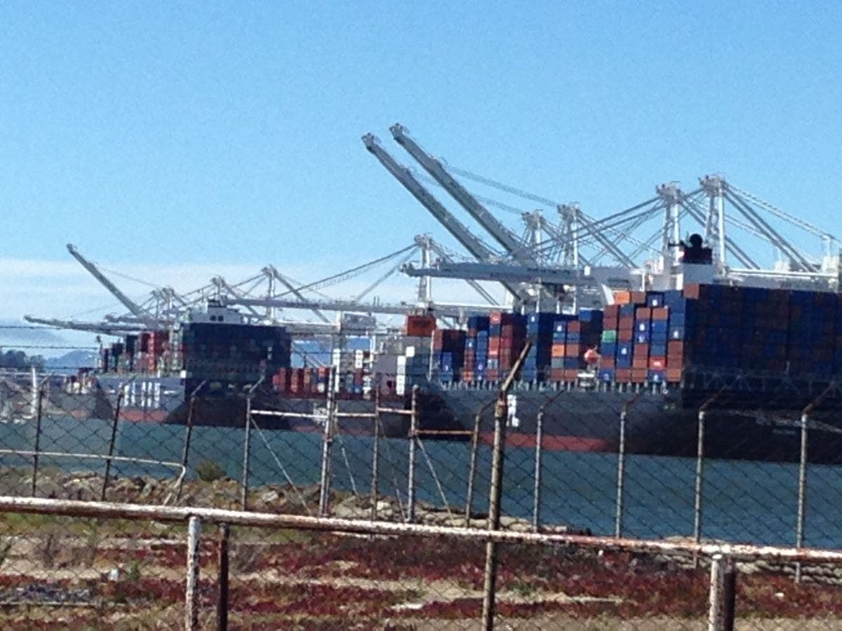 ALAMEDA, CA — Last week we featured a photo of the Park Street Bridge. Continuing our industrial theme, here's a view of container ships in port. There are plenty of people who go down and watch the maritime traffic passing by.