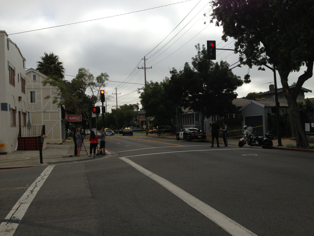 High Street was still closed off this morning at 9:30 a.m. between Liberty and Santa Clara after last night's fatal shooting of a robber by an off-duty sheriff's deputy.