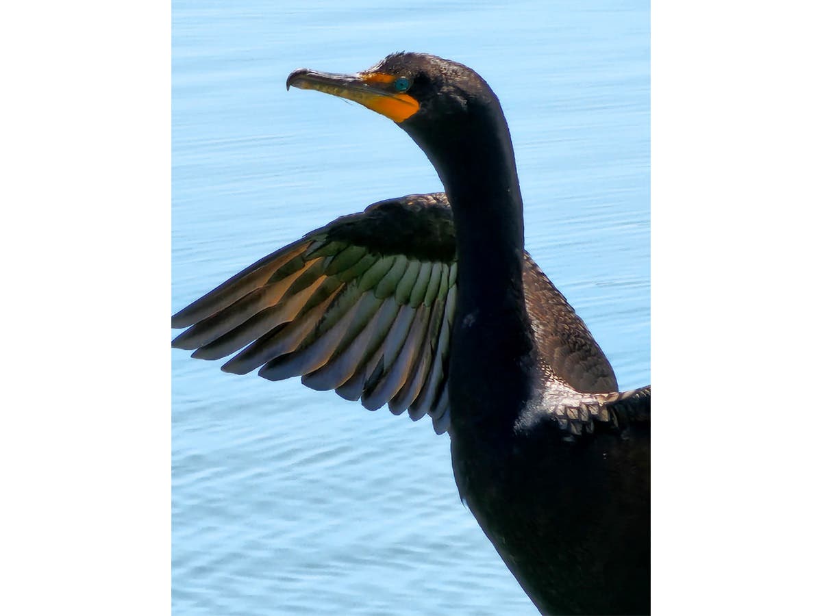 After chasing its meal underwater, a cormorant is drying its waterlogged wings.