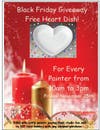 All Painters will receive a FREE Heart Dish on Black Friday, November 25th. Simply come in between 10am and 3 pm to paint anything, and the Heart Dish is yours!