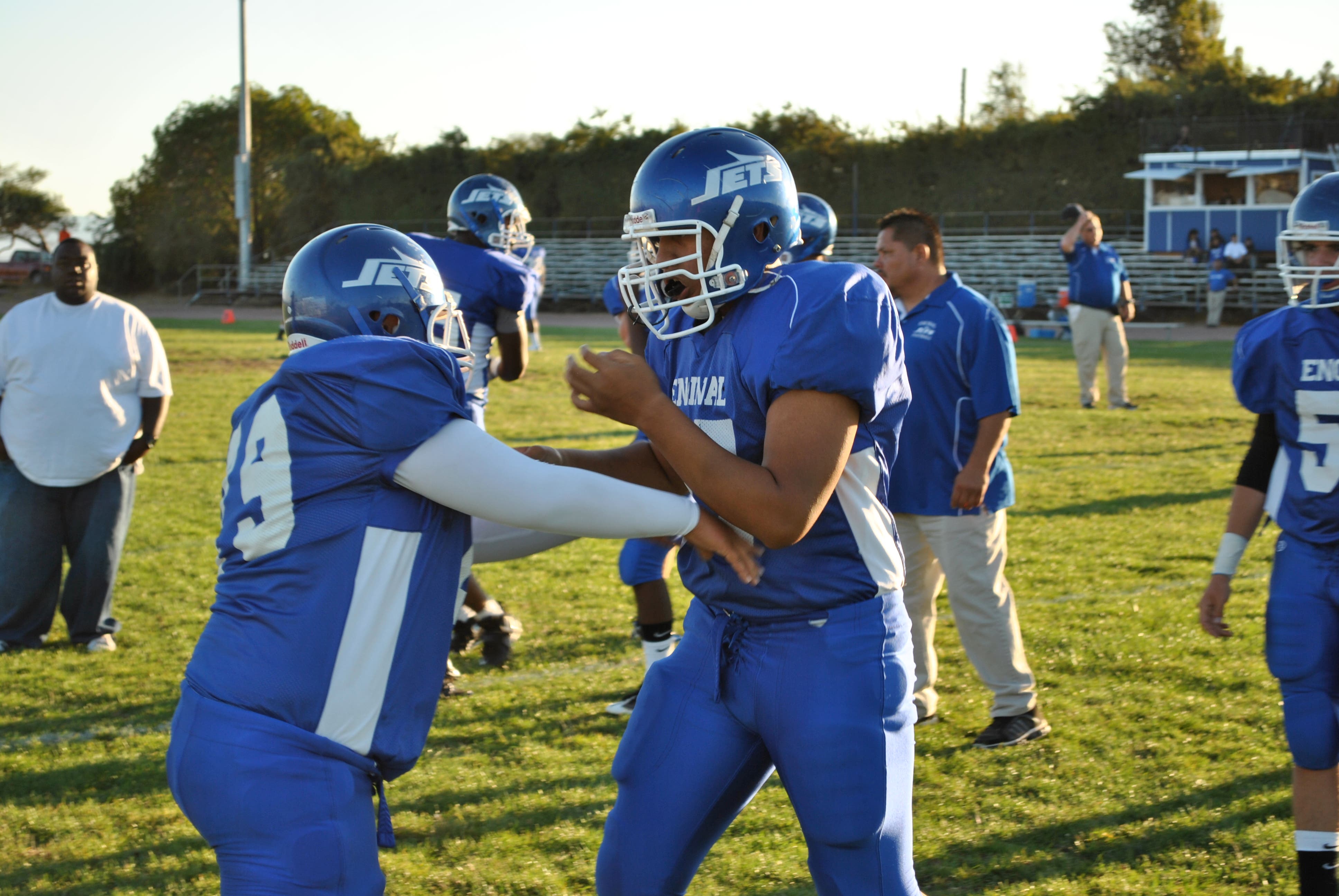 Attacking from all angles: In Encinal's 59-17 blowout of Piedmont on Friday, nine different Jets players carried the ball as the team rushed for 405 yards. Nine ball-carriers is impressive regardless, but it's remarkable when you consider the fact that the Jets have only 25 players on their roster. So more than a full third of the team pitched in on the dominating ground game. Jets Coach Joe Tenorio constantly preaches that he wants to build his team in such a way that it's never dependent on one or two players, and his philosophy plays itself out on the field in impressive fashion. Jonathan Allen leads the team in running yards with 408 on the season, but Friday night he was their fourth-leading rusher, as Jon Trodder led the way with six carries for 151 yards.