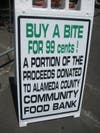 His entire family planned to buy six burger pieces at 99 cents (with all proceeds going to the Alameda County Community Food Bank) but because it was so late in the day and they were starving, they opted for eight pieces.