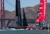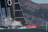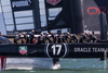 The Kiwis gained the lead off the start line and held it throughout the race, despite repeated attacks from ORACLE TEAM USA. The defender closed up to the challenger’s stern at the final turning mark, but the Kiwis were able to get around the mark on starboard jibe while ORACLE TEAM USA had to put in two maneuvers to round the mark.