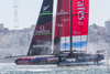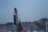 On the racecourse, the defender showed blazing boatspeed – foiling upwind at 30-32 knots and posting an average speed for the race just under 30 knots – and maintained a steady advantage to force the match into its 10th day tomorrow. Attempts to start Race 13, today’s scheduled second race, were abandoned when the wind exceeded the prescribed limit for the race with less than 90 seconds to the start.