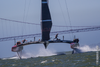 While the pendulum hangs in mid-balance, waiting to swing one way or the other, the performance of the AC72 continues to impress even the most hardened layman. Sailing upwind at speeds of 30 knots with closing speeds in excess of 70 knots has never been witnessed in the America’s Cup.